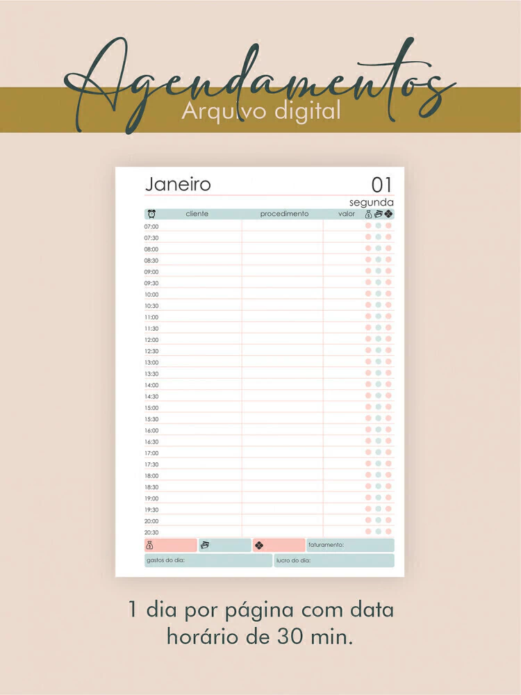 - divisórias dos meses com abas (atenção: o uso das divisórias só é aconselhado para agenda com 2 dias por página por conta do limite da quantidade de folhas com wire-o)