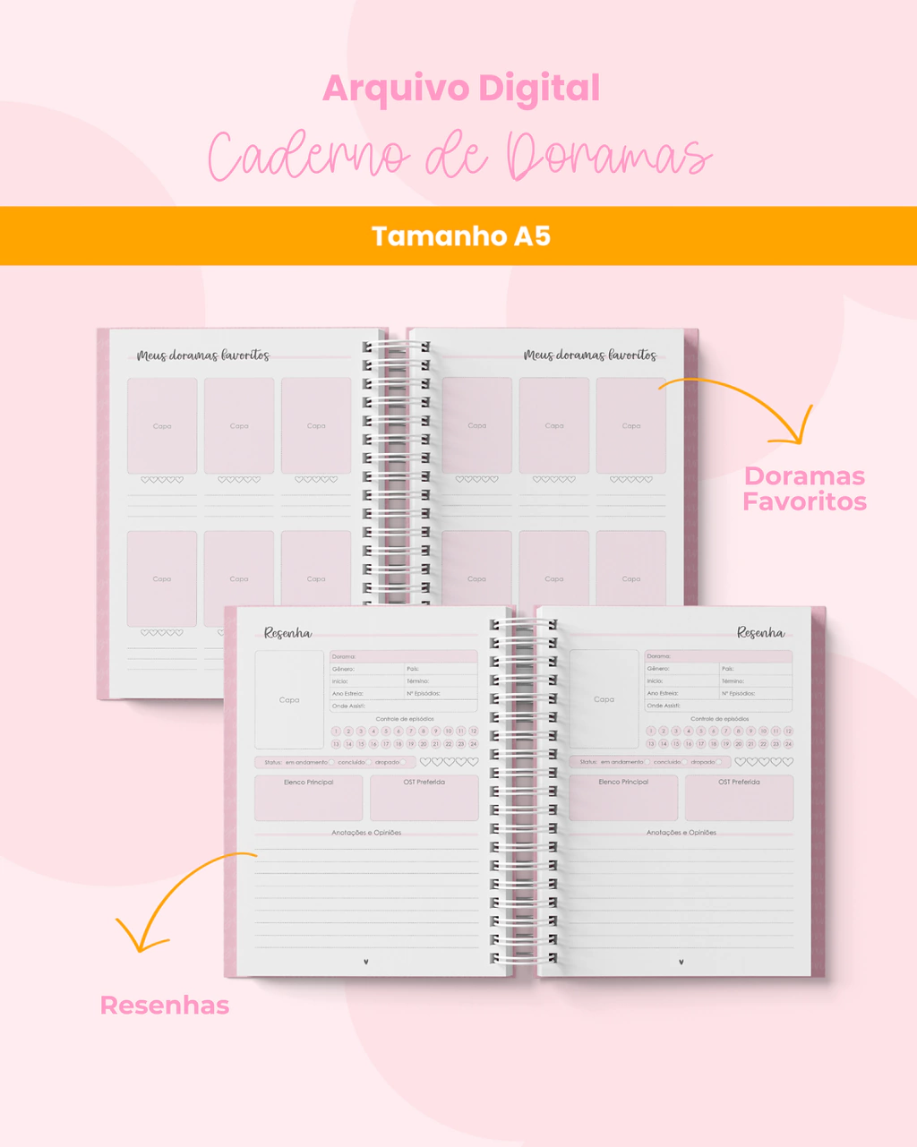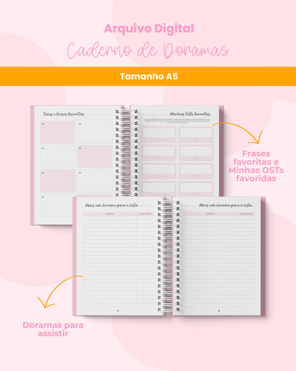O Arquivo Caderno de Doramas mais lindo e delicado que você já viu, acabou de chegar e tenho certeza que os seus clientes vão amar ♡