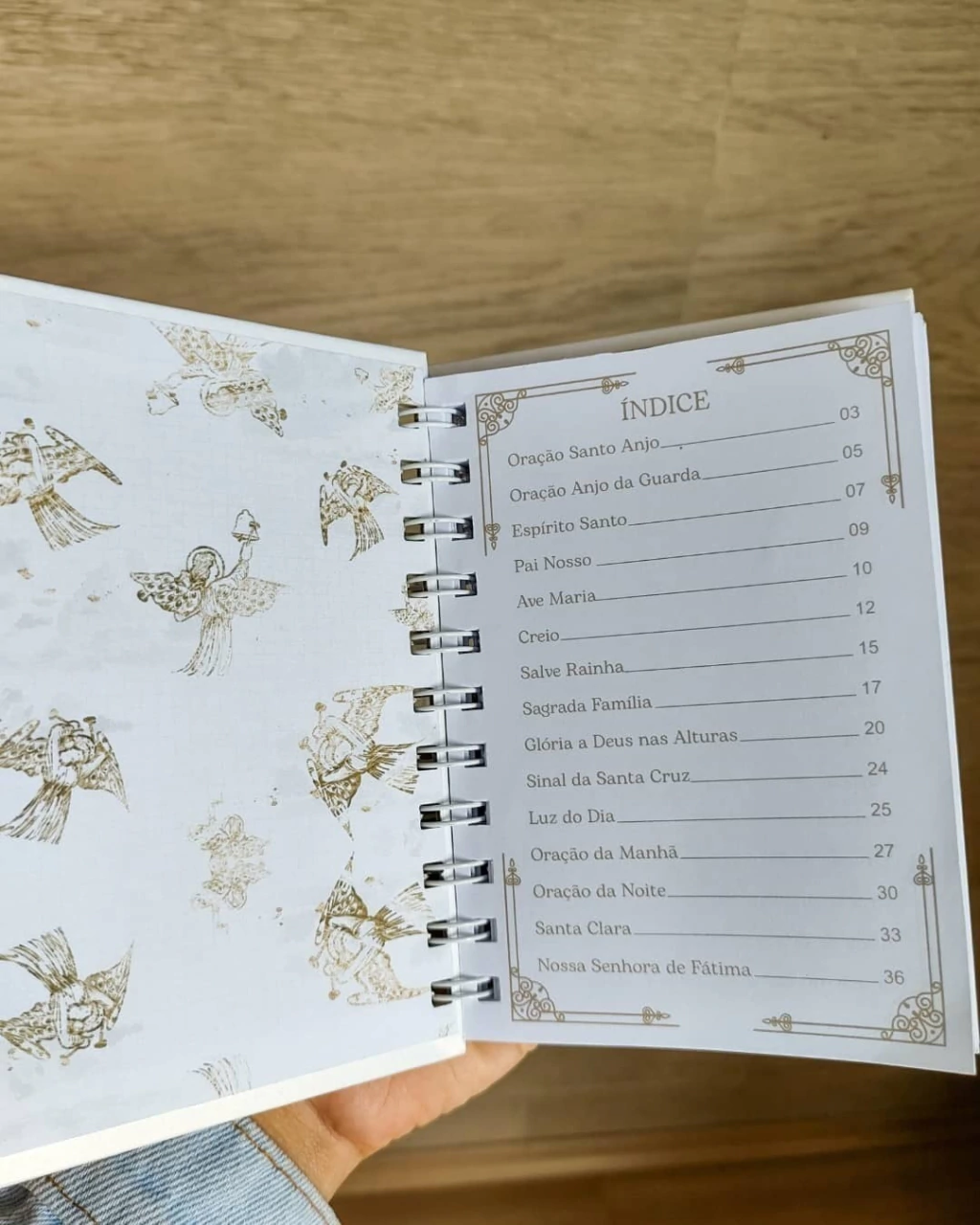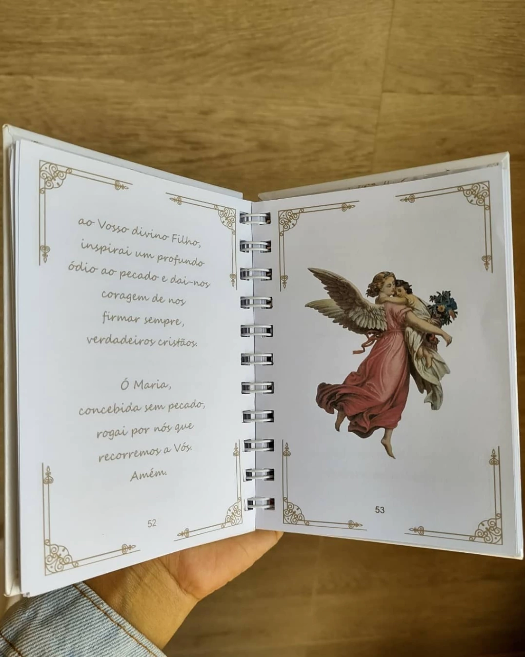 Com imagens de Santos e Anjos, o miolo dá tanto para menina quanto para menino.