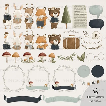 bosque, engomadinhos, meninos, bebe, raposa, cervo, pato, urso, ursinho, coelho, azul