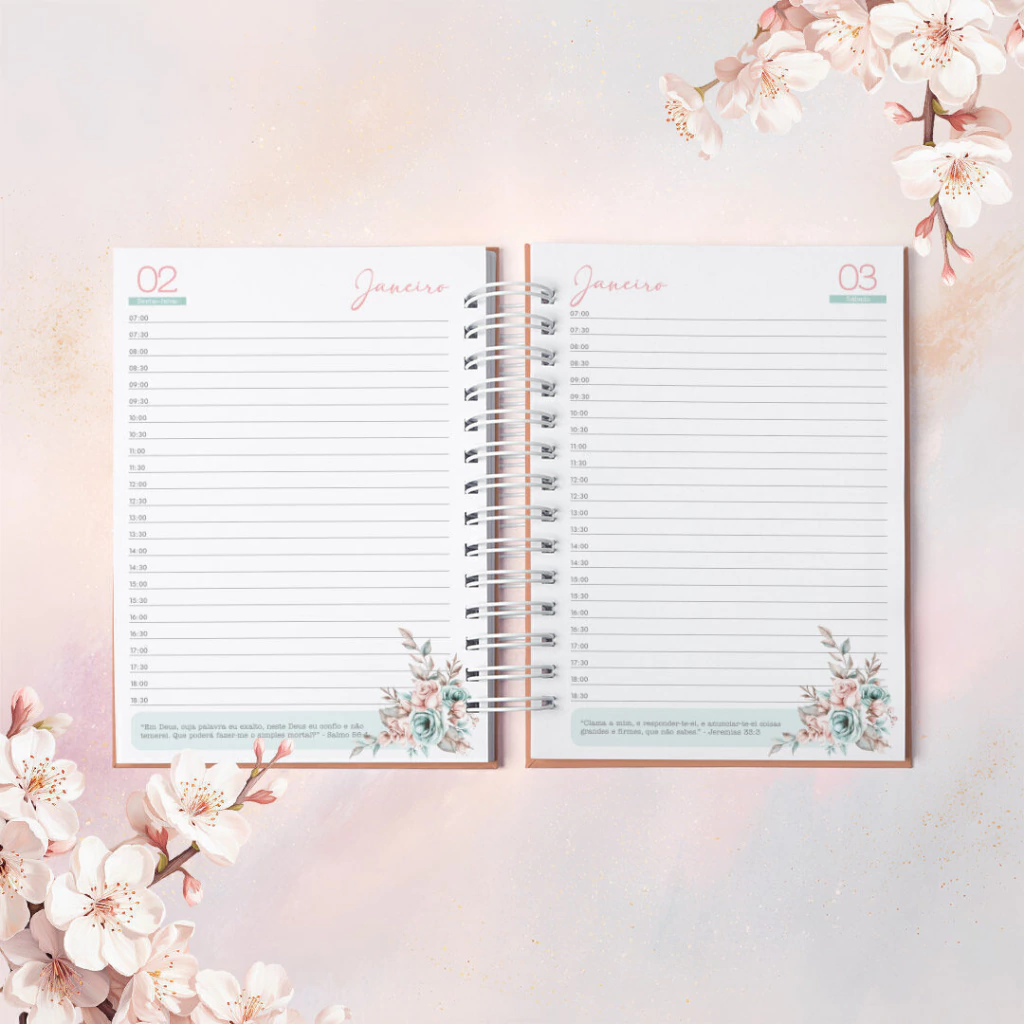 As Agendas com Versículos 2026 foram criadas para quem vê a organização como algo além de prazos e listas. Com um versículo bíblico diferente em cada página, elas irão acompanhar o dia com leveza, como presença diária de inspiração e fé no meio da rotina.